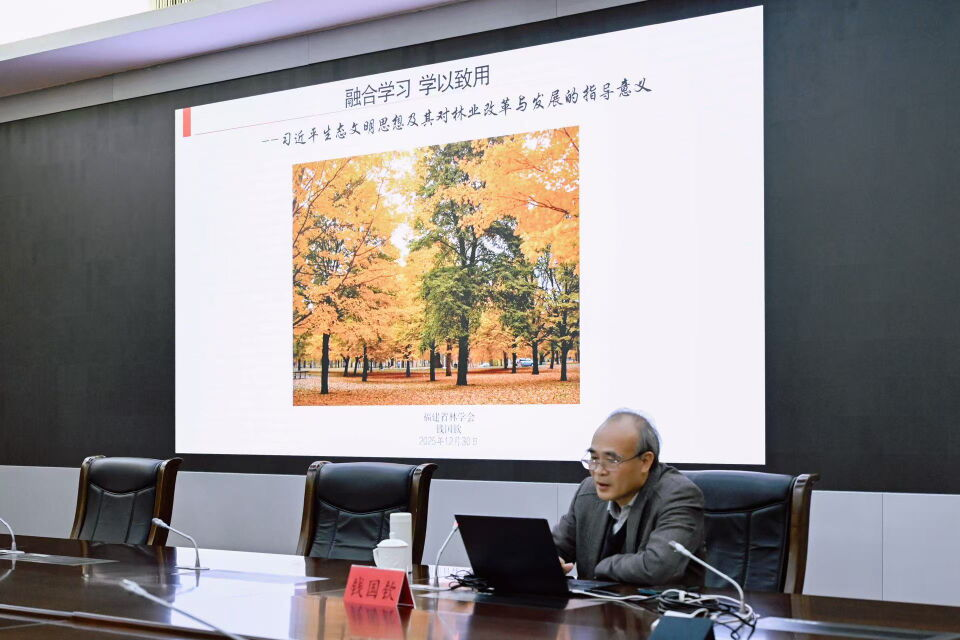12月30日,为深入学习贯彻党的二十届四中全会精神和省委十一届九次全会精神,福建省林业局举办2025年第四期青年讲堂暨“青春逐绿前行 共绘绿水青山”青年理论学习交流会。局党组成员、副局长石家泉出席活动并讲话,局机关青年理论学习小组成员和直属单位部分青年代表80人左右参加了活动。